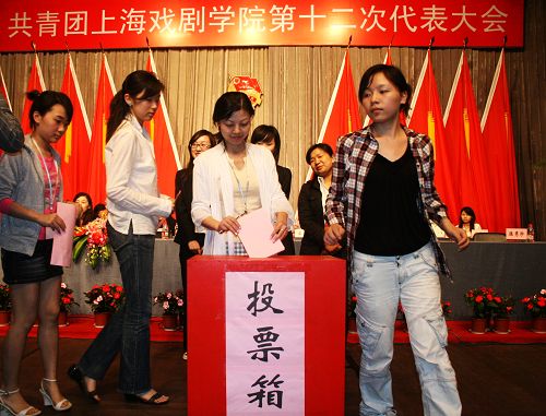 与会的111名代表认真学习了院党委副书记、副院长葛朗同志在此次大会上的重要讲话,听取了团委书记陈云同志代表共青团第十一届委员会所做的工作报告,并采用差额选举、无记名投票方式从27名委员候选人中选举产生了21名新委员,组成共青团上海戏剧学院第十二届委员会。他们分别是:陈云、徐晶、张国丽、王安宁、蒋文斌、陈莹、章文颖、徐一文、周欢、武世刚、姚远、魏燕玲、李冬梅、梁斌、曹颖、王非一、王萌、李伯冉、李泓晔、郝甜、蔡梦迪。