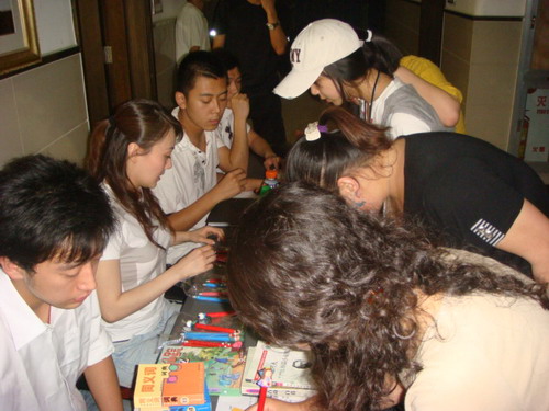 晚会现场,还有很多同学和老师纷纷参加主办方组织的“给灾区孩子的‘六一’礼物――图书认购”活动,活动中所募集的32本中小学生课外阅读书籍与1487元善款都将送到上海红十字会,捐给灾区的孩子。