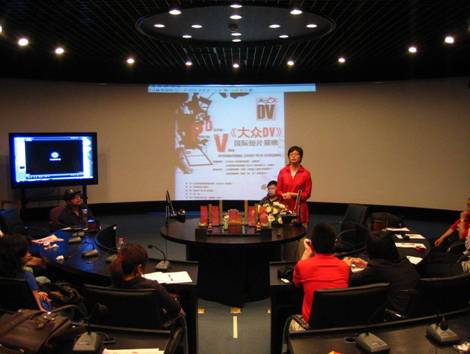 图为《大众DV》执行主编吴砚华女士介绍国际DV短片创作概况