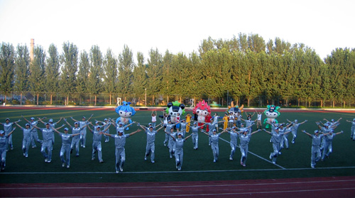 长达40多分钟的表演,围绕“福娃”展开,分为“欢欢”“迎迎”“贝贝”“晶晶”“妮妮”5大段,每一段根据福娃的不同特点,由闭幕式导演组派来的编导陆婷和上海歌剧院舞蹈家朱旭,分别编排出流行舞、现代舞、红绸舞、国标舞和芭蕾舞等。5个大型充气福娃,会在表演队伍中欢快奔跑。上海戏剧学院舞蹈学院的学生,从6月起就在上海封闭排练。整个“暖场表演”节奏欢快,气氛轻松,从舞台准备开始,演员们就像在排练一样展开表演。