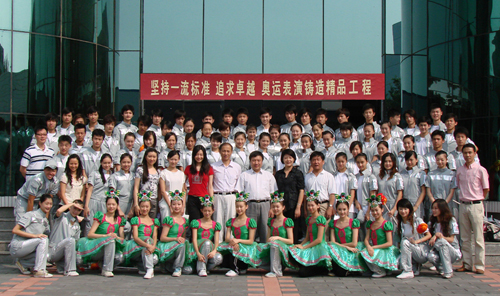 我校领导对此次演出给予高度重视。贺寿昌书记、葛朗副书记和楼巍副书记分别视察和检阅了舞蹈的排练情况,并且对如何进一步提高排练质量提出了重要意见。主持工作的韩生副院长亲自带队到北京,对如何搞好演出工作专门开现场办公会研究。上海市文广局副局长刘文国也专程到北京探望大家,鼓励大家。我们相信,有这么多领导的关心和支持,有领队的协调和管理,今天的暖场演出一定会取得成功!(图:周欢;文、编辑:白水)