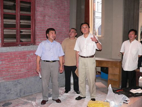 图为市政协秘书长管维镛在韩生副院长的陪同下视察剧组