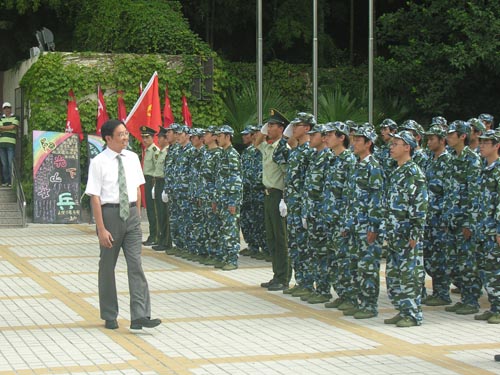 贺寿昌书记首先对我校08级新生顺利完成军训任务表示了祝贺,并发表了热情洋溢的讲话,鼓励学生们一如既往的发扬军训精神,把军人的品格带入上戏校园,在接下来的四年学习中,刻苦钻研,奋发向上,为成为一个德艺双馨的艺术家而努力。