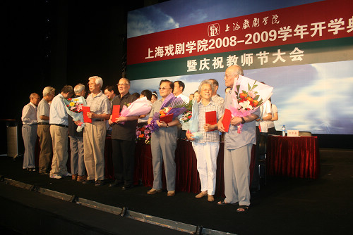 2008年9月9日,我校开学典礼暨庆祝24届教师节大会在上戏剧院召开。校党委书记贺寿昌、主持工作副院长韩生、副书记兼副院长葛朗、副书记楼巍、副院长刘志钢、副院长孙惠柱、院长助理兼戏曲学院院长徐幸捷出席了此次会议。参加会议的还有:学术委员会主任叶长海、表演系系主任龙俊杰、导演系系主任卢昂、舞美系系主任刘永华、戏文系主任陆军、电视艺术学院主持工作副院长赵韫颖、舞蹈学院院长陈家年、创意学院支部书记孙建华、公教部主持工作副主任陈敏、教务处处长陈其毅、学生处处长邱中岳。全体08级新生、老生代表、辅导员代表、教师代表、全体中层干部参加了会议。会议由孙惠柱副院长主持。