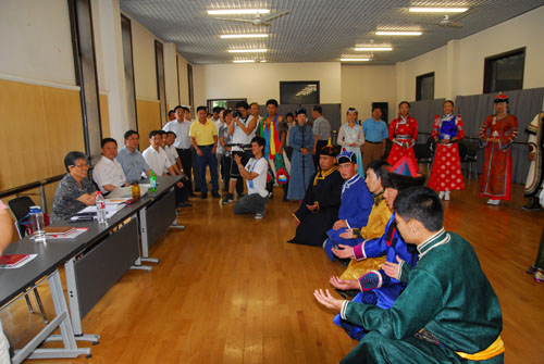 图为领导观看内蒙班新生表演