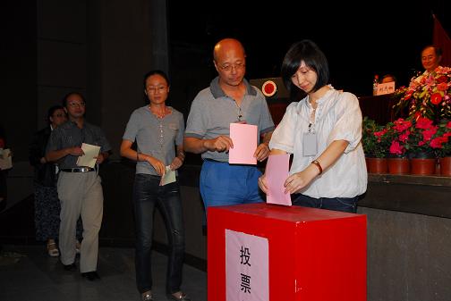 昨天的闭幕大会由大会主席团执行主席、党委副书记楼巍主持。到会的主席团成员在主席台就座。楼巍同志宣布,根据大会工作人员报告,在经过民主选举产生的163名正式代表中,昨天有158名代表出席会议,符合大会选举和通过决议所规定的人数。在大会以举手表决形式通过了选举办法和总监票人、监票人之后,大会进行了选举。