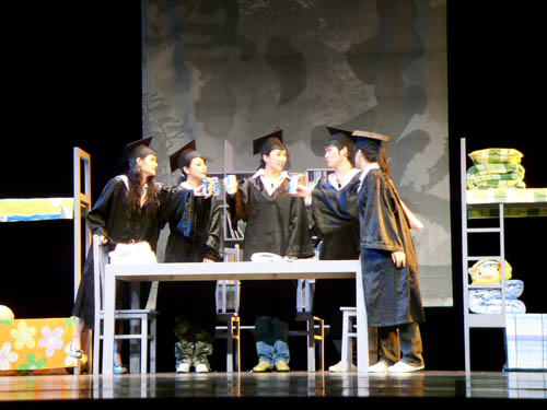 10月9日晚19时30分,由四川西南民族大学艺术学院选送参加首届中国校园戏剧节的参赛作品《青春飞扬》在上海戏剧学院实验剧院热力上演。这个来自震区的团队特别在开场感谢全国人民对大地震的关注和帮助。