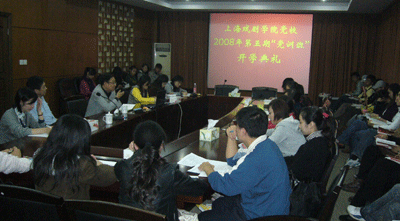 10月30、31日晚,我校2008年第四、五期“党训班”在华山路、莲花路校区举行了开学典礼,来自各院系100余名学生参加。开学典礼由组织部部长邱中岳主持,院党委副书记楼巍出席并对党训班学员提出三点要求:他勉励学员要端正态度,提高认识;要努力拓展学习内容;要联系实际,勤于实践。随后,院党委副书记楼巍为党训班学员作《与时俱进的中国共产党》的专题讲座。(图/05群文 蔡梦迪 文/徐莹 编辑/雨田)