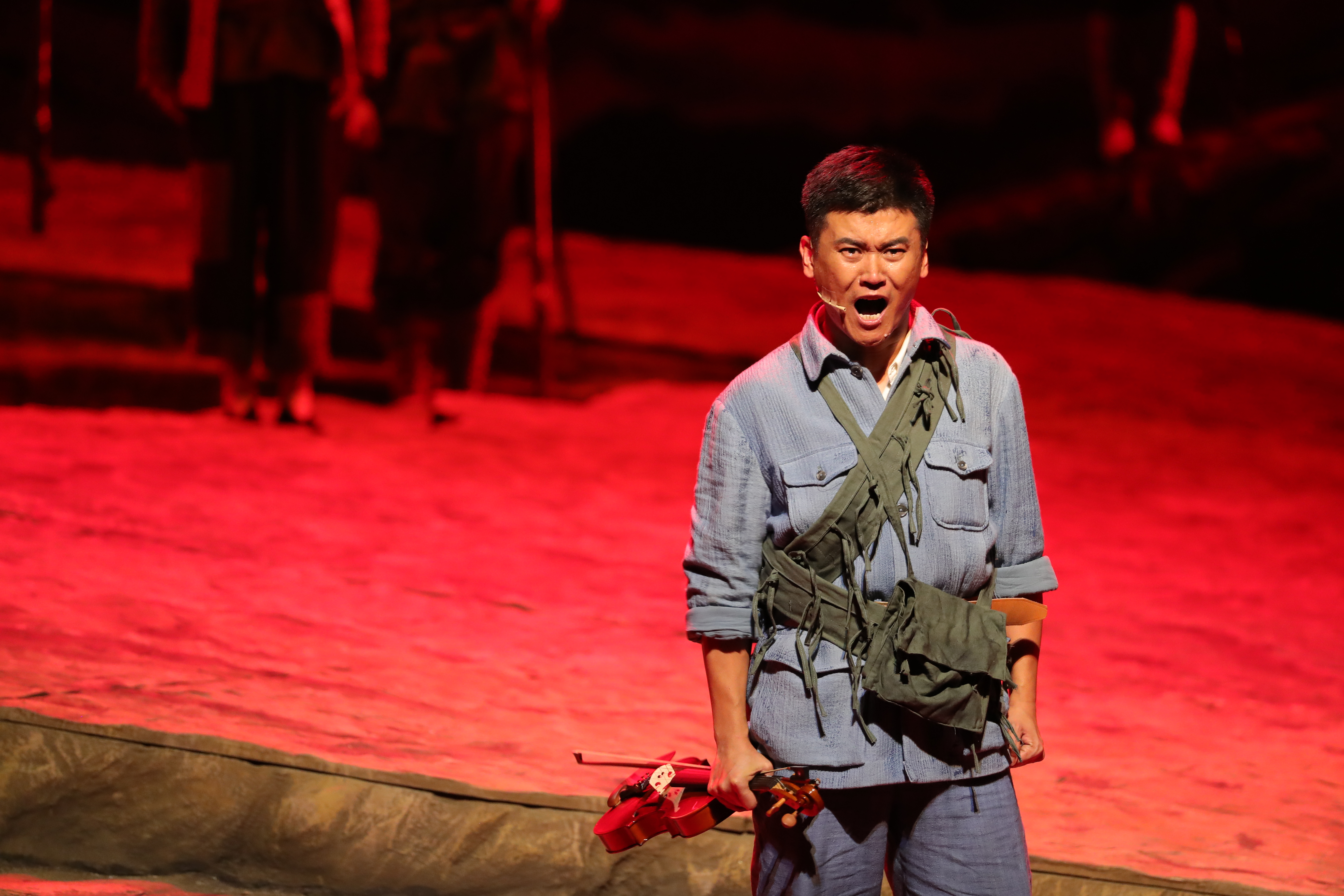 这是一部有着厚重的历史背景和强烈现实意义的戏。好的艺术作品一定离不开好的题材选择和开掘。该剧于今年6月首演获得了观众广泛好评,此论演出又进行了全方位修缮与提升,更加充分直面表现抗战时期全国一大批热血青年、文艺志士怀揣民族独立与自强的理想信念,从祖国的四面八方不畏艰险奔赴延安的豪情与壮志,绘写各自的青春梦想,创造了一个时代的文艺盛会。在这圣地的延安,有的加入八路军,在前线奋勇杀敌,有的则用文艺这个特殊的“武器”为抗战贡献着力量。《军歌》正是选取了这段抗日救亡的峥嵘岁月,选取了这片神奇的土地——圣地延安,正如卢昂导演所说的,“这是一个充满希望的时代,这是一个实现价值的地方。革命,让中国人凝聚在一起;延安,让人们的精神得到自由与解放!”延安鲁艺汇聚了一大批文艺志士,他们满怀理想与信念齐聚在这方神奇的土地上磨砺、成长,一起为中华民族的独立和自强不懈奋斗。