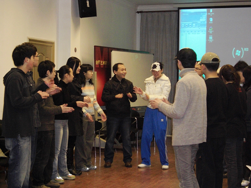 图为专家们观摩由我校研究生创作演出的百字剧