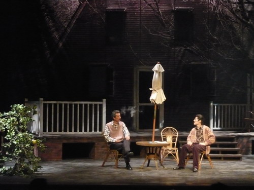 表05(2)班司琨饰主角乔•凯勒,贺坪饰克里斯•凯勒,魏璐和董怡江岭饰凯特•凯勒,刘芙伶和钱鑫饰安•迪 费尔,吕游和唐晓磊饰吉姆•贝利斯和乔治•迪费尔,于莹莹和申屠佳惠饰苏•贝利斯。演出以观众热烈的掌声收场。(选自表演系网页 文/表08内蒙班 尔奇斯 图/表08戏剧影视 张梦尧 编辑/陈莹 本网编辑/雨田)