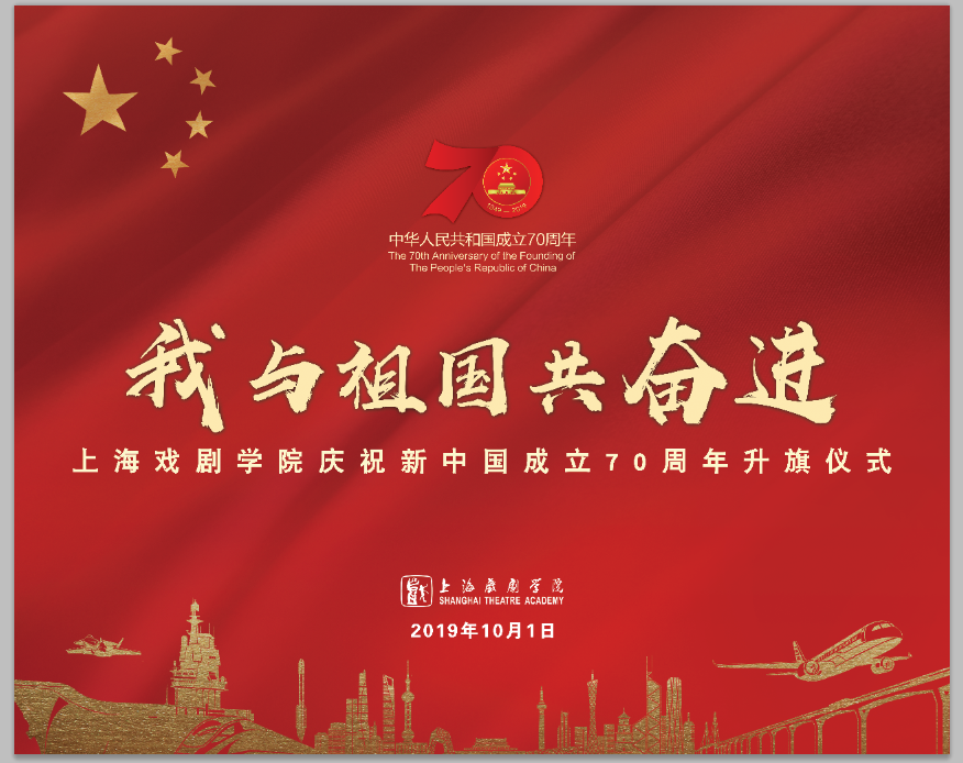 10月1日上午8时,“我与祖国共奋进”——上海戏剧学院庆祝新中国成立70周年升旗仪式在学校四个校区同时举行。上戏师生在鲜艳的五星红旗下隆重集会,为亲爱的祖国献上最诚挚的祝福!