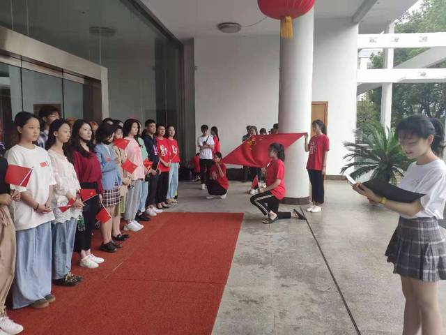 上海戏剧学院党委书记谢巍,党院办主任、宣传部部长、信息化办公室主任徐咏,组织部部长、教师工作部部长、人事处处长陈云,后勤保卫处处长陈昌富,宣传部副部长包立峰,党院办副主任刘俊,学工部副部长李冬梅,团委书记、学工部副部长徐晶,表演系党支部副书记朱锋,舞美系党支部副书记孙蕾以及各职能部门老师、辅导员,在华山路校区上戏实验剧院前厅参加了升旗仪式。