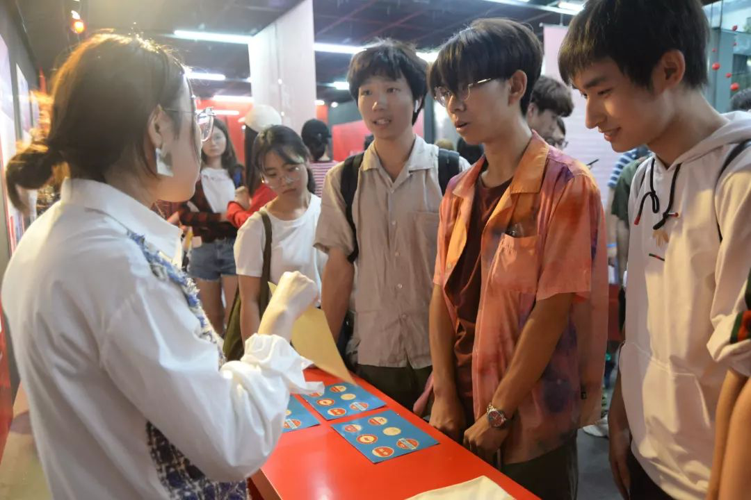 策展助理姜宇琦(18级艺术管理班宣传委员):策划展览之初,在了解每一件红色文创时,我常会被其创意所惊艳,还会为其背后的故事与精神动容。作为策展团队的一份子,我很想把自己心中的这份震撼与感动传递给每一位观众,打破人们由于红色文创的刻板印象而产生的距离感。于是我们加入了一些互动元素以及多媒体手段,让观众在观展过程中全身心地融入对文创产品的欣赏。