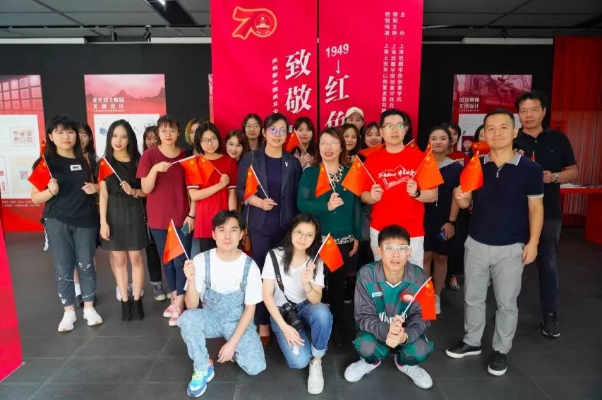 9月30日,在喜迎新中国七十华诞的热烈气氛中,由上海戏剧学院创意学院主办的“红色文创•致敬岁月——庆祝新中国成立七十周年暨课程思政成果展”在端钧剧场隆重开幕,为这个光辉的节日献上了深深的祝福。
