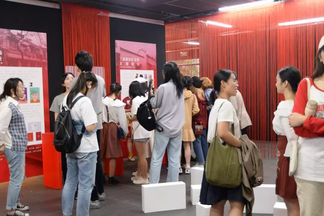 创意学院视觉传达设计专业的陈晔老师主讲的《设计原理》《视觉设计工作坊》,艺术管理专业的黄墨寒老师主讲的《策展与视觉艺术管理》《演艺制作专题》等课程率先进入整合平台。在授课的过程中,教师组织学生们分别走进中共一大会址、二大会址、龙华烈士纪念馆、周公馆、田汉寓所等上海部分红色文化纪念地(也包含部分海派文化、江南文化场馆),指导他们从中开掘设计要素,获取设计灵感,并最终形成各类文创作品,包括T恤、包袋、日历、笔记本等多种形式,以及3D打印水杯和手机APP。红色历史以当今时尚的文创方式走进了生活,走进了青年,成为可感知、能感动、有温度的思政。本次展览还实现了视觉传达设计与艺术管理两个专业的联动,这也体现了课程思政平台所实践的不同课程、各个教师、各类成果充分整合,共同推进思政教育的理念。
