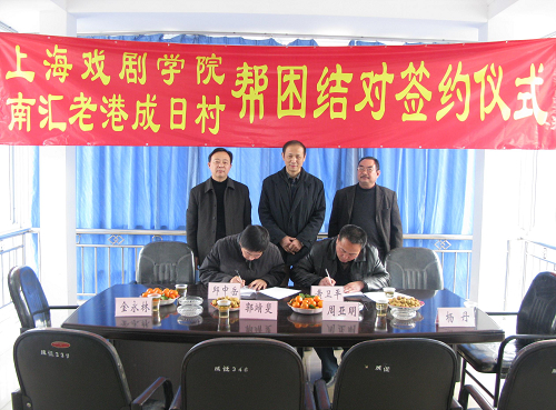 为贯彻落实市委组织部和市教卫党委有关文件精神,校党委决定利用自身优势,在力所能及的范围内开展与经济薄弱村进行结对帮扶活动,并委派组织部负责具体协调实施。经了解,南汇区老港镇成日村经济比较落后,贫困村民比较集中,特别是因大病致贫的村民和孤寡老人比较多;此外,该村丝竹队的成员年龄老化,乐器和演奏水平亟需改善和提高。在多次沟通和交流的基础上,24日双方签订了《结对帮扶协议书》,帮扶期限为三年,内容主要是帮助培训丝竹队新成员、提高丝竹队的演奏水平以及提供阅览室图书等。这项活动不仅有助于提高成日村村民的文化生活质量,也是我校以实际行动支持、参与社会主义新农村建设的一项具体举措,对巩固和深化党的先进性教育成果,进一步密切联系基层,构建和谐社会具有重要意义。