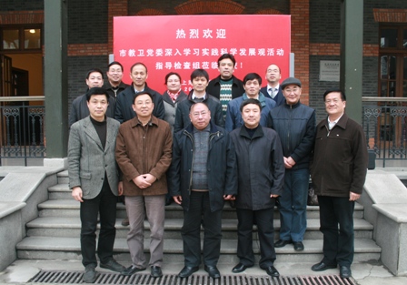 今天(3月4日)下午2点,市教卫党委深入学习实践科学发展观活动指导检查组一行5人在组长林樟杰(上海师范大学原党委书记)、副组长施小明(上海理工大学机械工程学院党总支书记)的带领下莅临我校并在佛西楼会议室听取了我校有关学习实践活动的准备工作汇报。我校党委书记楼巍主持汇报会。我校领导韩生、葛朗、刘志钢、孙惠柱陪同指导检查组成员蒋尧鹏(上海交通大学正处级纪检员)、杨伟岗(眼防中心原党支部书记)、殷晨(市教委纪工委干部)出席会议。我校党委职能部门负责人金永林、邱中岳、张生泉、罗小丹等同志也参加了会议。