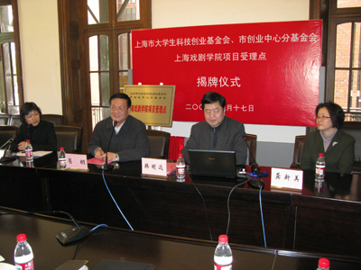 昨天下午,“上海市大学生科技创业基金会、市创业中心分基金会、上海戏剧学院项目受理点”揭牌仪式在我院佛西楼会议室举行。我院副院长葛朗、上海市科技创业中心副主任韩明远、上海市科技创业中心大学生创业办公室主任龚新美,以及各系辅导员、班主任和毕业班有创业意向的学生代表参加会议。学生处副处长徐咏主持会议。