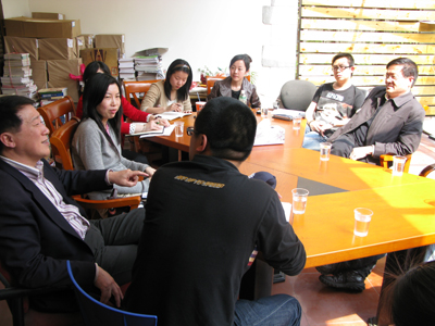 上海市大学生科技创业基金会于2007年发起了“创智上海,源自校园――2007上海大学生创业周”活动,并与全球创业周筹备组签订合作备忘录,正式成为“全球创业周中国站”的主办方。2008年成功举办了“放飞梦想,创响中国”的2008创业周暨全球创业周中国站系列活动。为了迎接2009年创业周,上海市大学生科技创业基金会拟与我校合作,推出以创业为主题的戏剧。此消息极大的激励了我校有创业想法的青年学子。来自导演系05级的谢迪同学向大家详细介绍了目前创业团队的人员构建和创作构想,顾春玲副秘书长对同学们的创意很感兴趣,希望能以此次合作为契机,助推我校大学生创业。(图/牛文佳 文/徐莹 编辑/雨田)