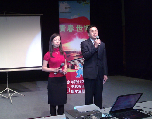 昨天是五一国际劳动节。南京东路社区的白领青年们下午在上海大剧院戏剧剧场度过了一个有意义的下午。在我校社会表演学研究生陈新煌、孙悦等帮助和指导下,他们演出了根据网络故事改编的话剧《开心2010》。我校副院长孙惠柱、宣传部部长张生泉与团市委、黄浦区以及街道的领导一起观看演出。