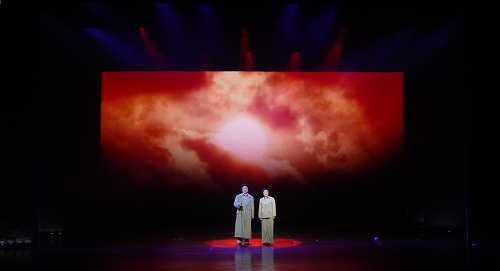 大型多媒体情景朗诵会《红色箴言》的成功,与我校参与原创的主要创作人员对舞台美术、影像、灯光、音乐音效和多媒体技术创新有直接的关系。导演刘志新老师告诉记者:“朗诵会一般只是注重听觉的东西,不讲究舞美、灯光、色彩、影像、情调、文字之间的结构关系,所以对观众的情感影响力有限。这次我们之所以用多媒体情景朗诵会的方式来创作,就是要把听觉艺术的内容与舞美造型、影像、光线、文字以及多媒体技术结合到一起,将朗诵者放置到一个精心营造的空间环境中,通过灯光、舞美、布景和大屏幕影像的变化处理,来重现革命先烈当时所处的情境与年代氛围,使整个演出在视听平衡中完成,通过多种视觉手段增强诗文内容的感染力。”如丁建华、吴京安朗诵《黑牢诗篇》时,在巨大的黑色背景天幕上有一个小小的牢窗,随着诗歌内容的升华,那牢窗越来越大,最终冲破黑暗的围墙,展现出一个充满生机的新世界。又如在凯丽朗诵《铁窗摇篮曲》时,舞台的背景出现了淅淅沥沥的小雨,那雨水滴落在地面上,仿佛每一滴都撞击着一位母亲的心。诸如此类的舞台影像与灯光设计,使历时90分钟的演出具有了更加感人的艺术魅力,现代化的灯光、舞美、音乐等多媒体手段成功营造了历史环境氛围,延展了艺术家们充满深情的表演,带给观众强烈的震撼,现场气氛感人至深,引起观众心灵上的强烈共鸣,令观众在更加广阔的时空中遐想、沉思、放飞情感。