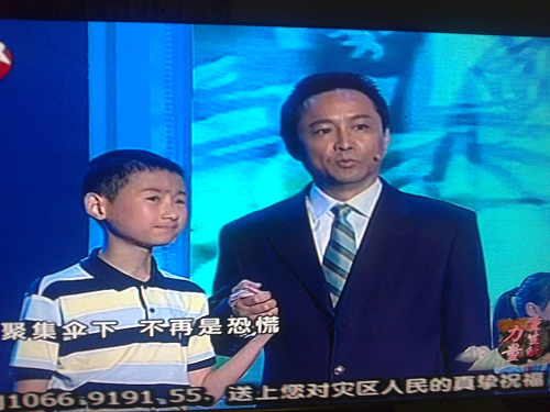 上海《东方卫视》昨天(12日)晚上7点半播出《重生的力量――纪念地震一周年特别节目》。我校电视艺术学院教授宋怀强参加节目演出。在地震一周年之际,我们上海和四川两省市同志再次联手,隆重推出这档反映中国人民抗震救灾伟大精神的节目。昨天的演出,上海方面的主持人由我校校友赵屹欧、陈蓉担纲;参加演出的还有乔臻、丁建华、陈龙等著名演员。(图、文:白水;编辑:子鱼)