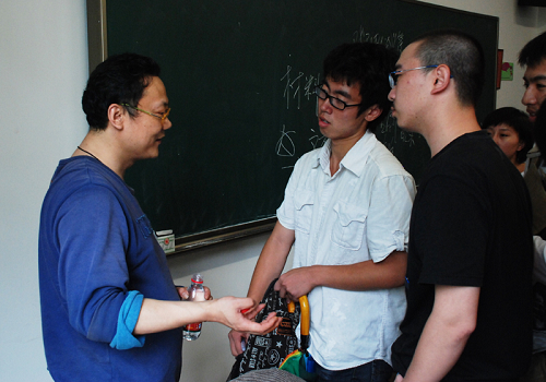 图为张广天老师与我校学生交流