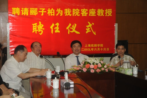 上海戏剧学院聘请郦子柏为客座教授的聘任仪式,于2009年6月16日在莲花路校区图书馆会议室隆重举行。主持工作副院长韩生、戏曲学院院长徐幸捷、人事处主持工作副处长张�、戏曲导演专业主任宋捷等领导以及戏曲导演专业部分学生出席了聘任仪式。