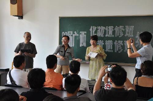 2009年6月25日上午10点,09届广西化妆进修班与灯光进修班结业典礼在红楼201教室举行。到场的嘉宾有广西壮族自治区文化厅副厅长陈映红、人事处处长孙毅,以及舞美系系领导、各任课老师及09届广西化妆进修班与灯光进修班同学50余人。