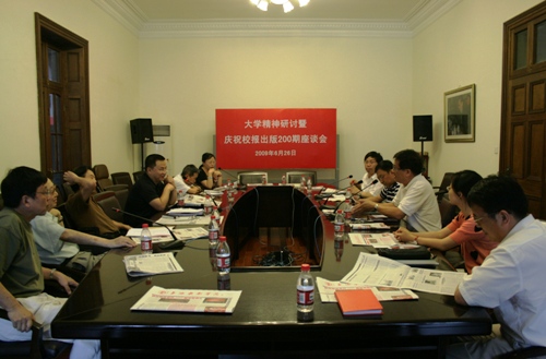 昨日下午2时,大学精神研讨暨庆祝校报出版200期座谈会在佛西楼会议室隆重召开。校党委书记楼巍、副院长葛朗、宣传部部长张生泉,以及沈炜元、陆军、朱国庆、王邦雄、陶伟民、方军、林剑龙等参加了座谈。