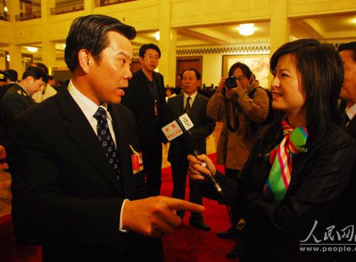 图为张泉灵在采访全国“两会”代表委员(选自《人民网》)