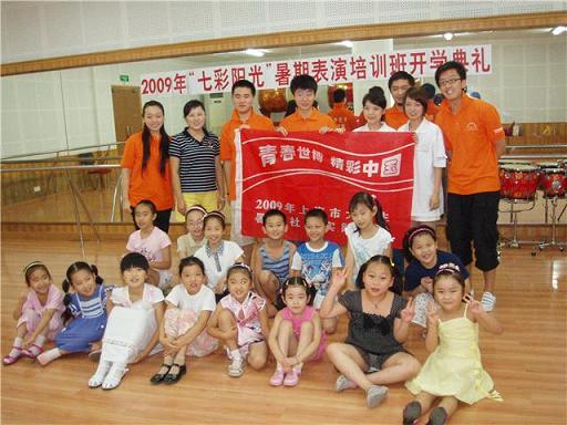 日前,2009年上海市大学生暑期社会实践重点项目――我校“七彩阳光”世博园区外来务工人员子女艺术指导志愿者活动开班仪式在浦东东明路街道隆重举行。