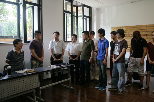 图为校领导视察表演系内蒙班学生新学期第一课