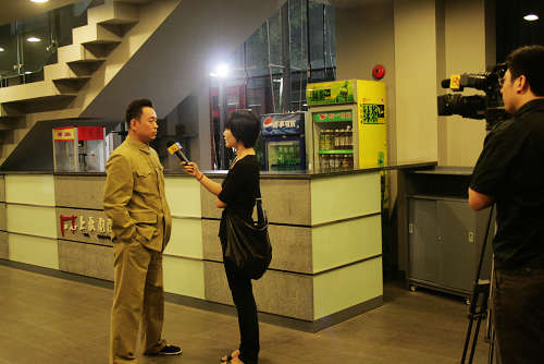 图为粟裕扮演者卢森堡接受新华社记者采访
