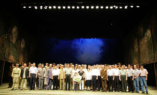 上海警备区政委李光金少将一进剧院贵宾室就高兴地对我校领导说:“上海戏剧学院是一所很有名的艺术院校,粟裕大将是我们军队的优秀指挥员,在我军历史上,除了最高统帅部的领袖外,在领导作战水平上能够和粟裕相比的不多。在国庆到来之际,能够在话剧舞台上领略老首长的风采,学习他的精神,很有意义。我代表警备区的官兵向你们致意。”
