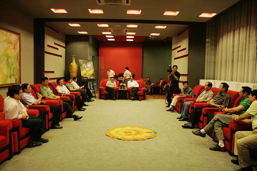 图为领导与主创人员在贵宾室交谈