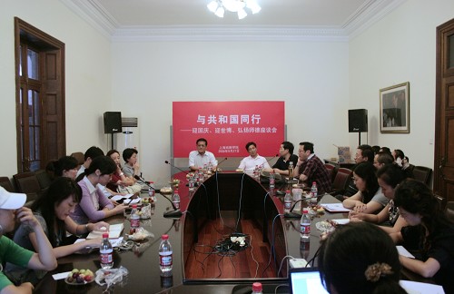昨天(9月27日)下午,我校在佛西楼会议室举办“与共和国同行――迎国庆、迎世博、弘扬师德座谈会”。座谈会由宣传部、工会、人事处主办,副院长葛朗、宣传部长张生泉、工会常务副主席谢建平、人事处主持工作副处长张�以及来自各院系的优秀教师代表、辅导员出席座谈会。座谈会由宣传部长张生泉同志主持。
