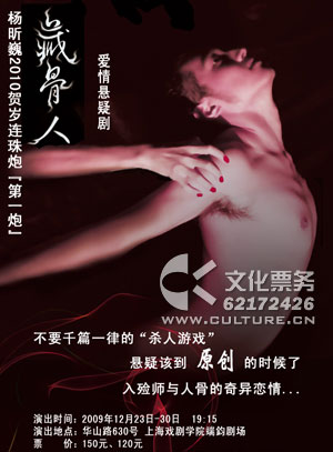 该剧将于2009年12月23日至2010年2月28日在上海戏剧学院端钧剧场、上海话剧艺术中心、美琪大戏院轮番上演。在12月23日至12月30日登陆上戏端钧剧场,为观众奉上别具一格的饕餮盛宴,如何让爱与异化一线之隔?如何让纯美于邪恶同存于一副人骨?话剧《藏骨人》将一一呈现给大家,让你不得不“哭一次!害怕一次!”(图、文/学生记者团 戴济遥 编辑/子鱼)