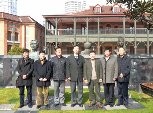 图为领导与嘉宾校园合影