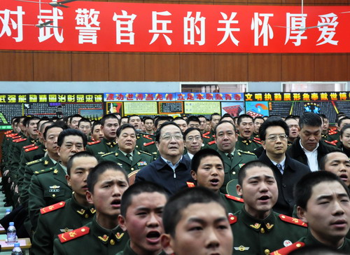 昨天(2月2日)上午,中共中央政治局委员、上海市委书记、上海警备区党委第一书记俞正声,市委常委、市委秘书长丁薛祥,市人大常委会副主任、市总工会主席陈豪,副市长胡延照,市政协副主席、市工商业联合会会长王新奎,市公安局局长、武警上海市总队党委第一书记、第一政治委员张学兵等市领导在武警上海市总队总队长刘洪凯等部队领导的陪同下来到武警上海市总队某部慰问部队官兵,并一同观看了上海人民春节拥军慰问团慰问武警部队演出。