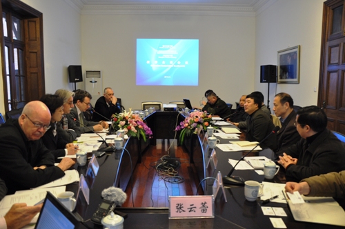 3月3、4日,德国哥德学院、柏林自由大学、保利文化集团有限公司、上海戏剧学院教学合作会议在我校佛西楼会议室召开。歌德学院总部策略评估部副主任Enzio Wezel先生、柏林自由大学文化产业和传播中心主任Klaus Siebenhaar先生、歌德学院中国区总院长Michael Kahn-Ackermann先生,保利文化集团有限公司董事、总经理李南先生,以及我校领导韩生院长、副院长孙惠柱、院办主任金永林、教务处长厉震林、舞美系主任刘永华、演艺中心主任兼08级剧场技术管理专业班主任王履玮等出席了会议。副院长孙惠柱主持会议。