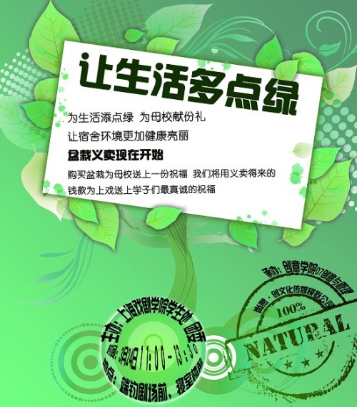 3月24日中午,由校学生处、团委主办,创意学院07级创意管理班和尚熙•创文化传媒(模拟)公司承办的“为学校添点绿”盆栽义卖活动在尚熙学生公寓成功举行。活动现场气氛热烈,同学们热情高涨,纷纷表示希望为寝室增添一抹绿色,让自己的寝室生活更加亮丽,并为学校65周年生日奉献上戏学子的绵薄心意。