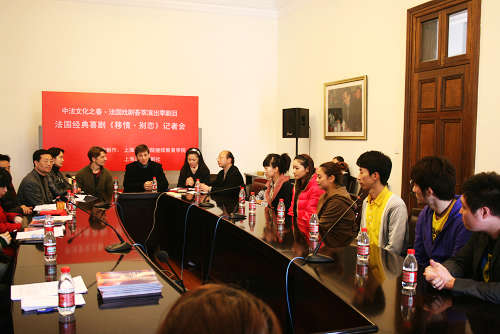 今日(4月16日)下午2:00,作为2010中法文化之春・法国戏剧荟萃演出活动之一的法国经典喜剧《移情・别恋》新闻发布会在我校佛西楼会议室举行。法国驻上海总领事馆卢逸凡博士、我校继续教育学院常务副院长马麟鸿、上海现代人剧社张余、上海艺术研究所副所长胡洪庆、话剧《移情・别恋》导演博律斯・李得艺以及该剧演职员代表出席新闻发布会。沪上多家新闻媒体到会进行采访报道。新闻发布会由我校继续教育学院邱海萍老师主持。