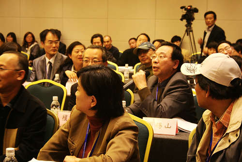 图为来自上海艺术研究所的周锡山教授向发言代表提问