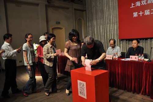 大会交流之后,代表们对《报告》进行了投票表决。经过大会选举的监票人、计票人统计,葛朗同志宣读了对《上海戏剧学院行政工作报告》的投票表决结果:发出选票127张,收回有效票127张;其中125票赞成,2票弃权,0票反对。《上海戏剧学院行政工作报告》在热烈的掌声获得通过。