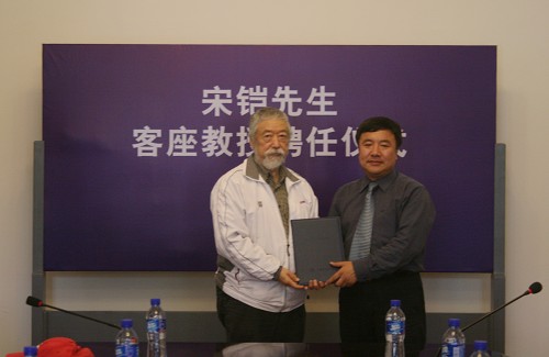 昨日,宋铠先生的客座教授聘任仪式在佛西楼会议室举行。我校韩生院长、宫宝荣副院长、院办主任金永林、人事处主持工作副处长张�,创意学院支部副书记刘志新及创意学院部分师生出席聘任仪式。聘任仪式由张�主持。