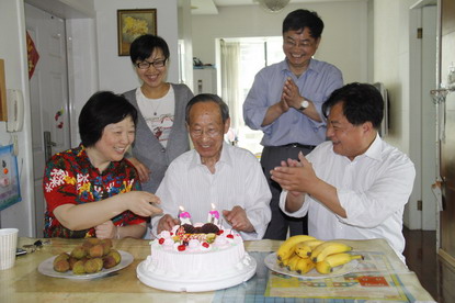 刘老师非常感动,他反复强调:从来没有想到党和国家会给他这么优厚的待遇,没有想到可以如此幸福地安度晚年,他真诚地感谢学院及戏校的领导和工作人员,离休20年来始终牵挂着他、关心着他。看着跳跃着的生日蜡烛火苗、品尝着香甜的生日蛋糕,刘老师异常激动,话匣子一打开就收不拢了:刘老师回忆起当年参加革命、参加解放战争的那段历史,他说:“旧社会国民党统治时期家住农村地区的一家人由于不能全额交纳当时繁重的苛捐杂税,国民党的士兵将还未成年的他一顿毒打,后来接触了共产党,了解了共产主义理想,就义无反顾地了加入了解放军,又入了中国共产党,自此就再也没有动摇对共产主义的信念,刘老师强调他无悔于自己的选择。历史证明:只有共产党才能解放广大群众,只有共产党才能领导中国人民走向繁荣、富强。”刘老师还讲到:离休之前他一直坚持自己的小家庭只是作为社会主义建设的一个小部分,什么时候都以集体利益为重,对家庭兼顾的比较少。几十年来无论在部队还是在工作岗位他都认为集体生活极大地锻炼了他,组织的温暖也一直激励着他。交谈中刘老师几度哽咽,每每讲到动情处,他的眼中都噙满泪水。孙秋红老师真诚地对刘老师讲:“您们都是新中国的开拓者、建设者,是国家和民族的财富,希望您保重身体、幸福生活,在身体、精力允许的范围内多参加学校为离退休教职工组织的各项活动,也可以见见老战友、老同事。”