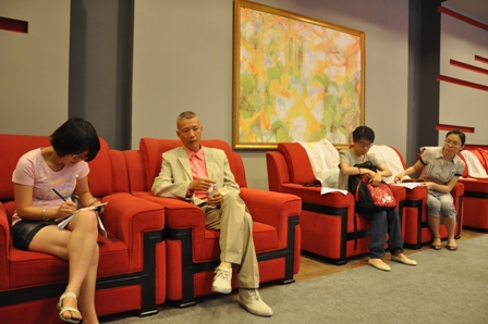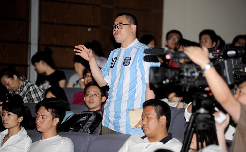 在接受学位之后,蔡国强举行了媒体见面会,接受了媒体记者的采访和提问,《光明日报》、《解放日报》、《青年报》、《新闻晨报》、新浪网、东方网、上海教育电视台等媒体记者参加了见面会。(图/雨田 文/子鱼 编辑/子鱼)