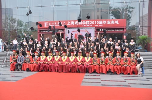 最后,举行了毕业生学位授予仪式,校领导们宣读了校学位委员会关于授予博士、硕士、学士学位、专科毕业生名单的决定及毕业生名单,校领导集体向毕业生授予学位证书及毕业证书并与毕业生在上戏剧院前合影留念。